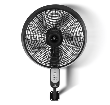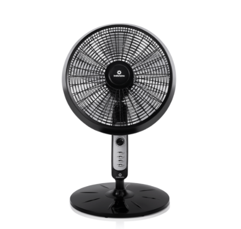 Potente circulación de aire, 3 funciones: Piso, pared o mesa, 3 velocidades, temporizador de 1 hora, regulador de altura, acabado en negro, motor de aluminio, 5 aspas plasticas, rejillas plasticas.