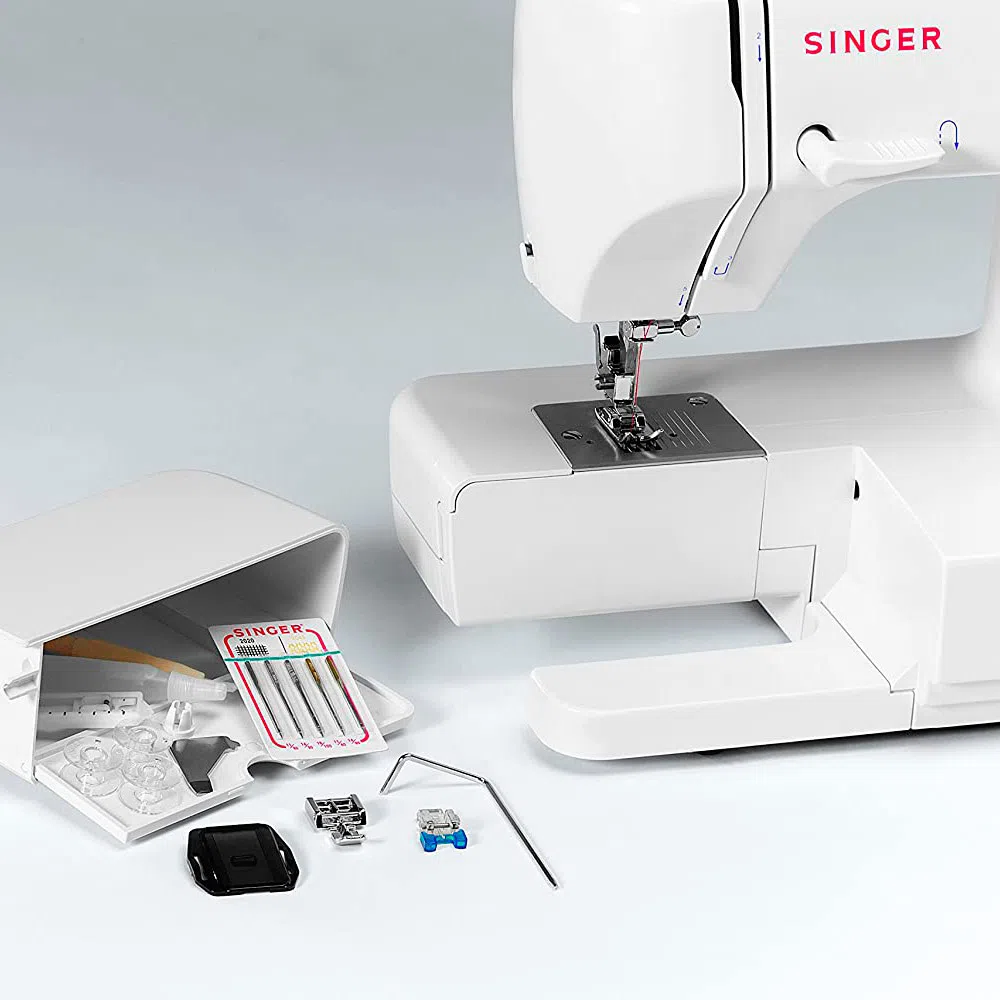 Con la máquina SINGER, coser se hace fácil. La máquina de coser SINGER 2250 Tradition cuenta con 10 puntadas integradas que incluyen un ojo automático de 4 pasos. Esta máquina de coser cuenta con presión de prensatelas ajustable, tensión ajustable y un elevador de prensatelas extra alto. Esta máquina viene con un surtido de accesorios que incluye cuatro prensatelas (costura multiusos, cremalleras, ojales y botones) para ampliar sus posibilidades creativas de costura.